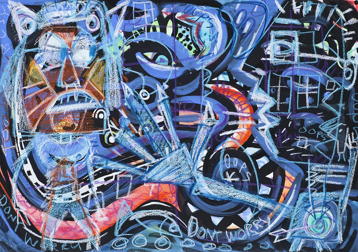 Oops..Don't Worry , water soluble crayons and ink on paper 20” x 14”